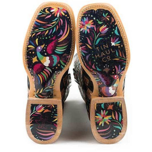 Women's Tin Haul Birds Of A Feather Boots With Magical Horses Sole Handcrafted Tan