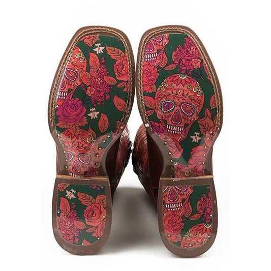 Women's Tin Haul Mon Cherry Boots With Skull And Roses Sole Handcrafted