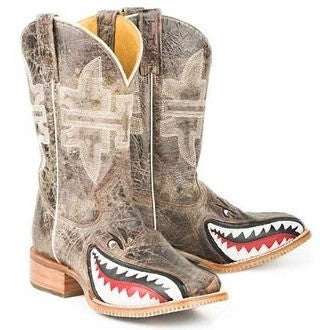 Men's Tin Haul Toastin A Gnarly Shark Boots With Beer Girl Sole Handmade Brown