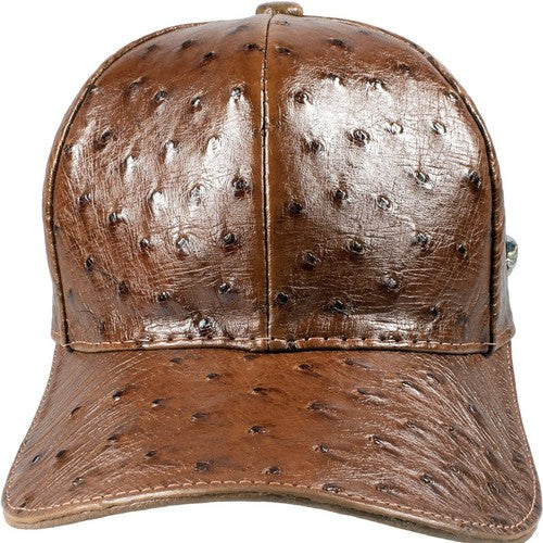Cognac Ostrich Cap Real Full Quill With Adjustable Closure Handmade In The USA