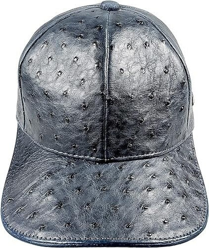 Blue Jean Ostrich Cap Real Full Quill W Adjustable Closure Handmade In The USA
