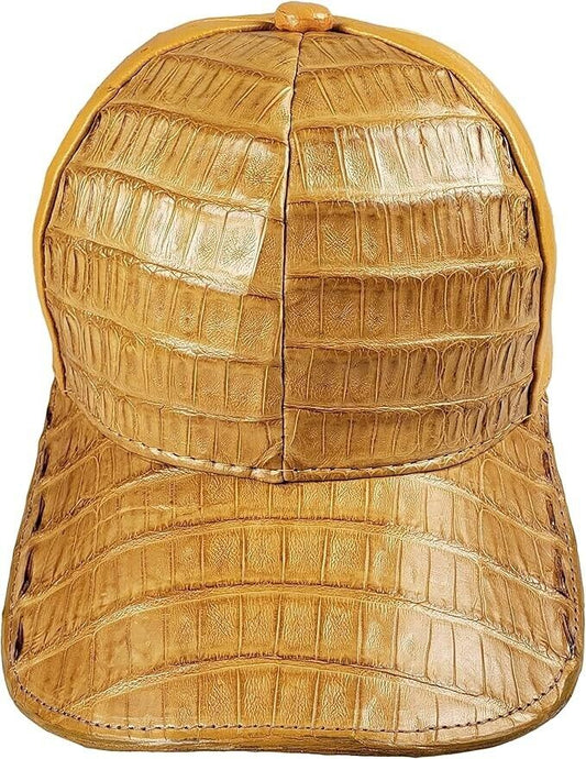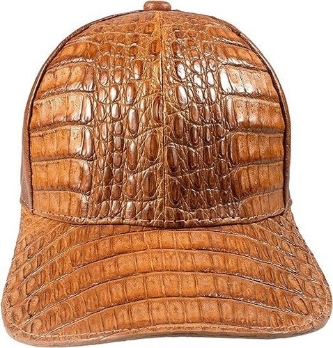 Cognac Caiman Crocodile Alligator Belly Cap Genuine Adjustable Closure Handmade