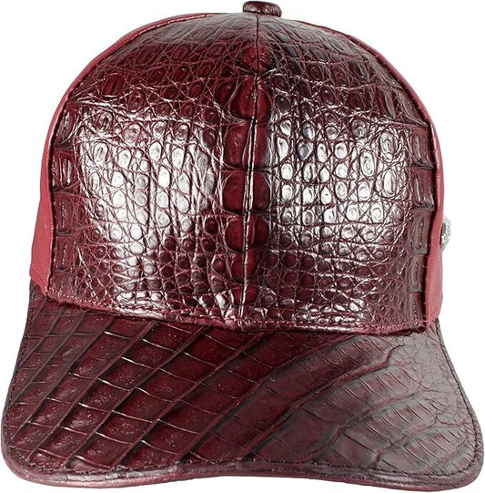 Burgundy Caiman Crocodile Alligator Belly Cap Real Adjustable Closure Handmade