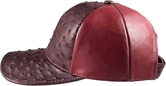 Burgundy Ostrich Cap Real Full Quill With Adjustable Closure Handmade In The USA