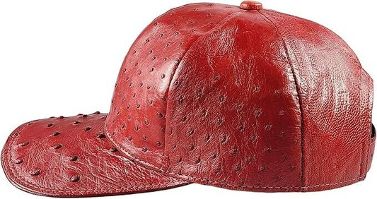 Red Ostrich Cap Real Full Quill With Adjustable Closure Handmade In The USA