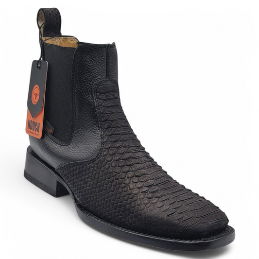 Men's Hooch Python PRINT Chelsea Boots Black Handmade
