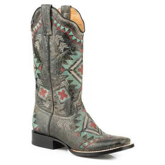 Women's Roper Mai Square Toe Boots Handcrafted Black