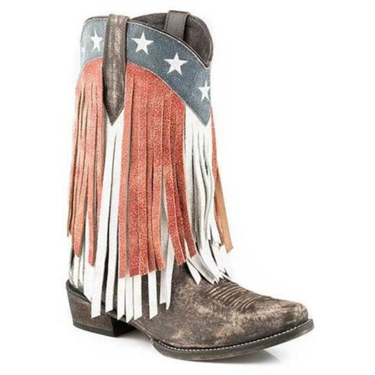 Women's Roper American Beauty Fringe Boots Handcrafted Brown
