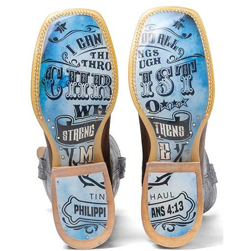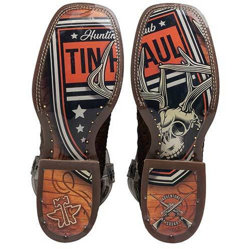 Men's Tin Haul Wirelash Boots with Devils Rope Sole Handcrafted Square Toe Brown
