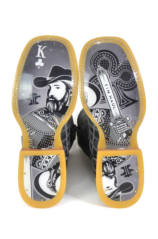 Herren Tin Haul King of Clubs Stiefel mit Cowboy-Kartensohle, handgefertigt, Schwarz/Grau