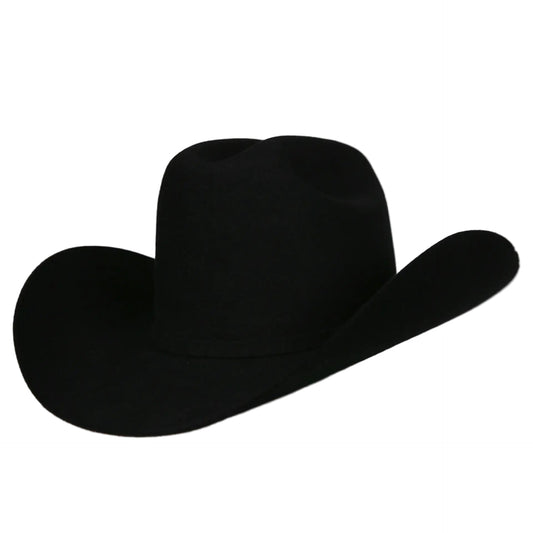 Sombrero vaquero de fieltro de lana negro (100 unidades), ala de 10 cm y copa de 11,5 cm, auténticamente hecho a mano.