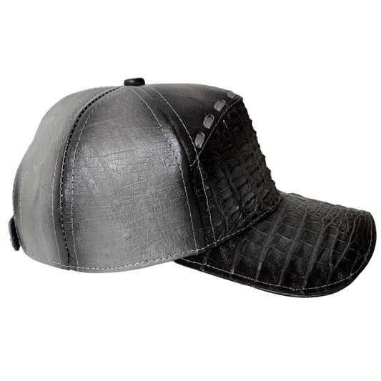 Gorra de cocodrilo caimán gris con vientre de caimán, cierre ajustable, hecha a mano.