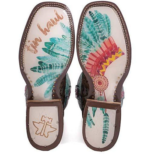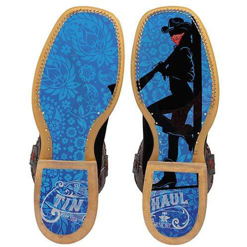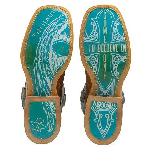 Botas para mujer Tin Haul Gitchu A Good One con suela Barrel Racer Lug hechas a mano en turquesa