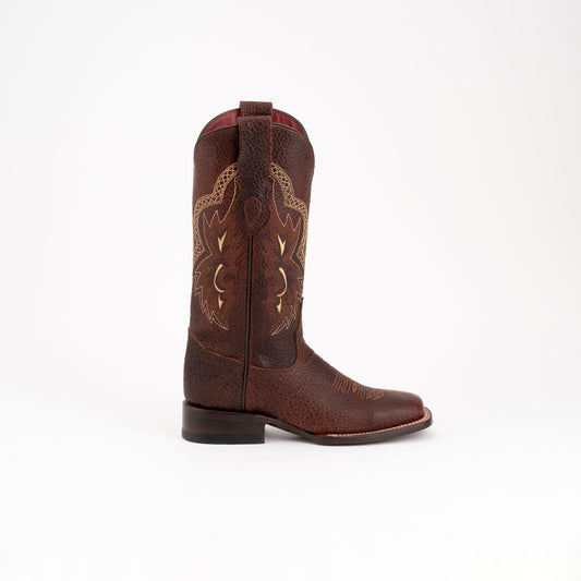 Botas de mujer Ferrini Bronco Pirarucu con estampado artesanal en color chocolate