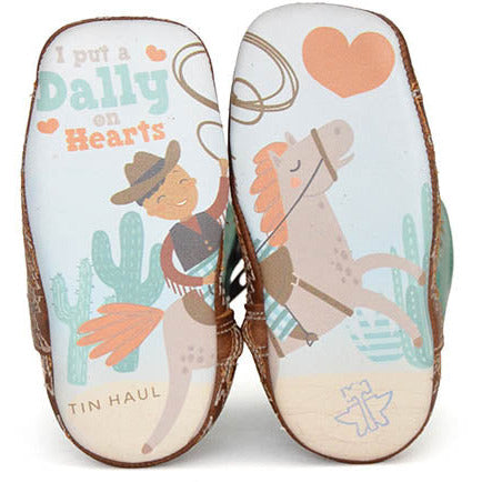 Botas Baby Tin Haul I Am In Stitches con suela Dally On Hearts hechas a mano en marrón