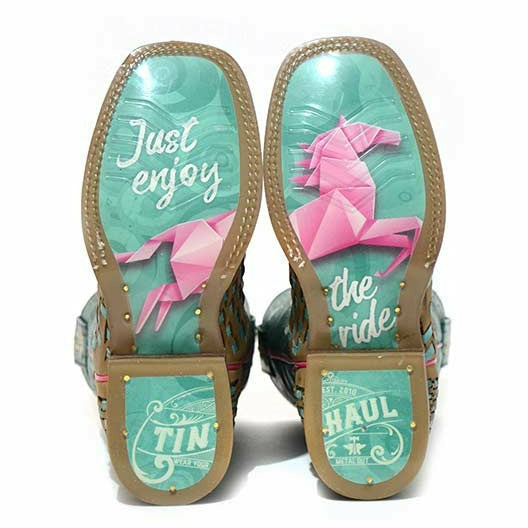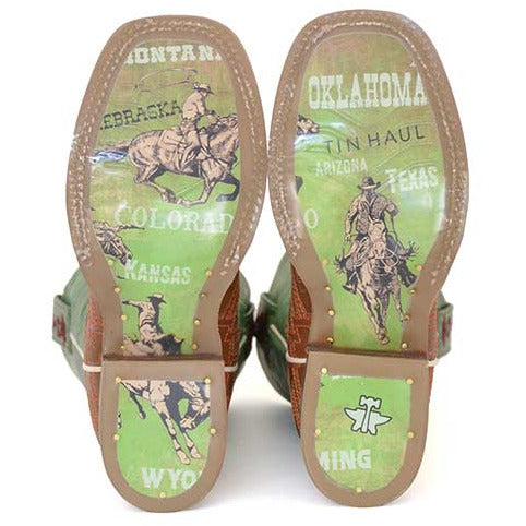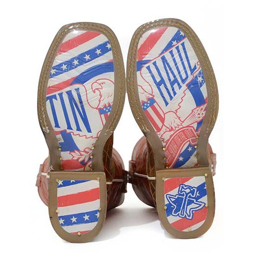 Botas Tin Haul Gitcha A Good One para niños, suela Enjoy The Ride, hechas a mano, color tostado