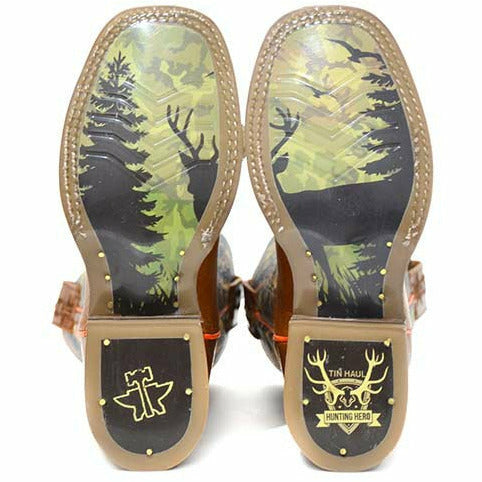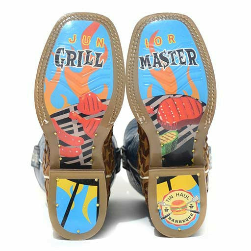 Botas infantiles Tin Haul Grill Master Junior con suela para fiesta de barbacoa, hechas a mano en color marrón