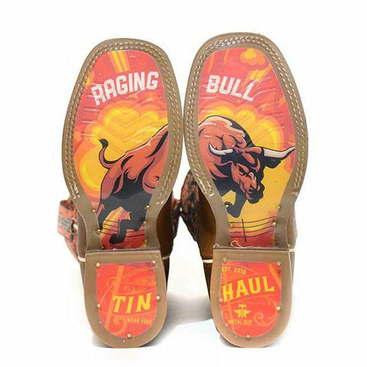Botas Tin Haul Mini Brands para niños, suela Raging Bull, hechas a mano, color tostado