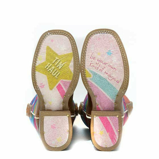 Botas con destellos de arcoíris de Tin Haul para niños, suela de estrella mágica, hechas a mano en color tostado