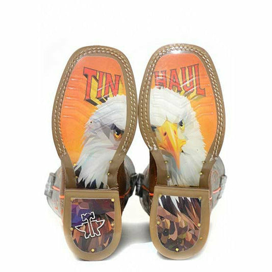 Botas cruzadas Tin Haul para niños con suela de águila calva, hechas a mano en color tostado