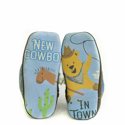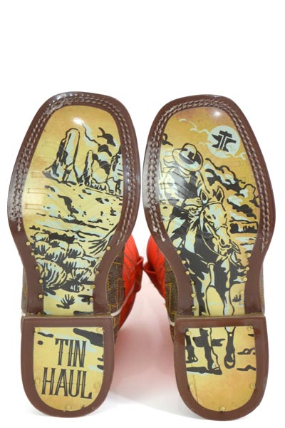 Botas Tin Haul Gridlock para niños con suela vaquera Ride 'Em, hechas a mano en color tostado