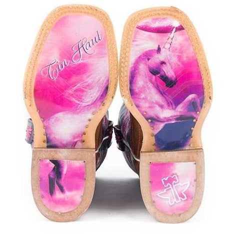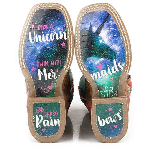 Botas de unicornios mágicos Tin Haul para niños con suela Chasing Rainbows, hechas a mano en color canela