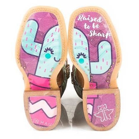 Botas Tin Haul Cactilicious para niños con suela elevada para ser afilada, hechas a mano en color tostado