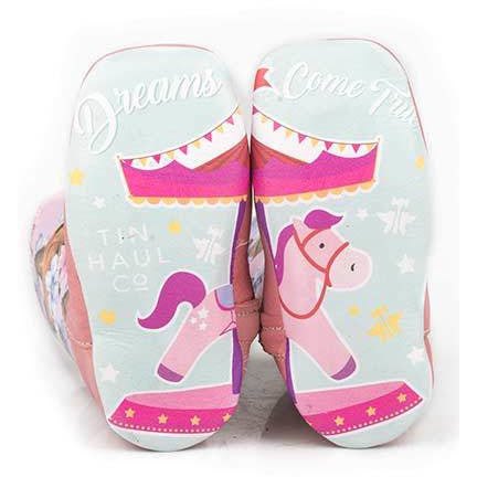 Botas Tin Haul Little Miss Dotty para niños con suela Horse A Dot, hechas a mano en color rosa