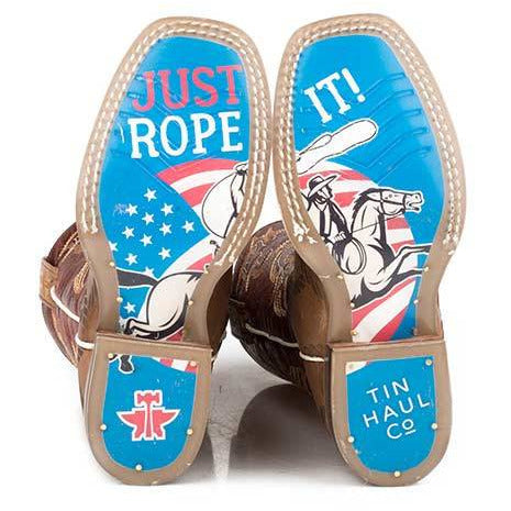 Botas de cuerda retorcida Tin Haul para niños con suela Just Rope It, hechas a mano en marrón