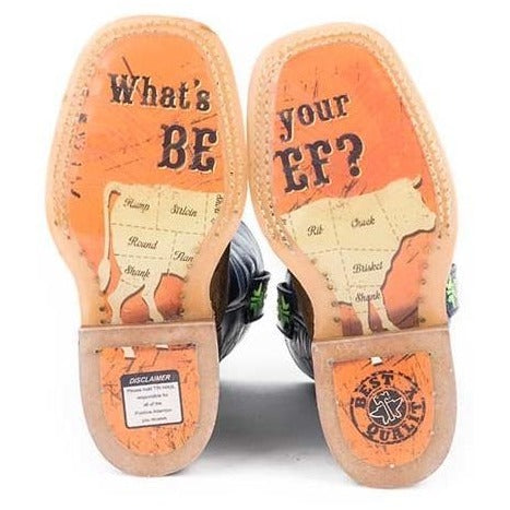 Botas de alambre de púas Tin Haul para niños con suela de vacuno, hechas a mano en color marrón