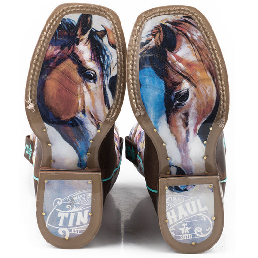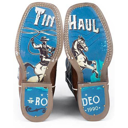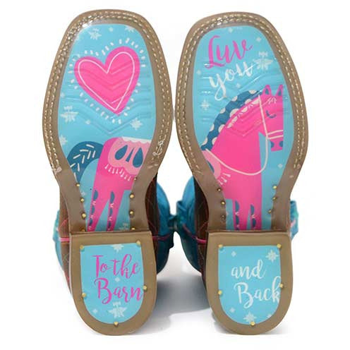 Botas Tin Haul Hearts & Colts para niños con suela To The Barn & Back, hechas a mano en marrón