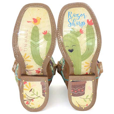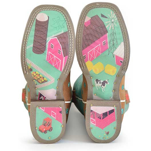 Botas Tin Haul Little Dotty para niños, suela Pretty Lil Farm, hechas a mano en color tostado
