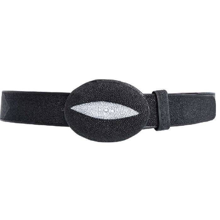 Black Stingray Belt Single Stone With Leather Lining Handmade Genuine WD 1 1/2” Removable Buckle