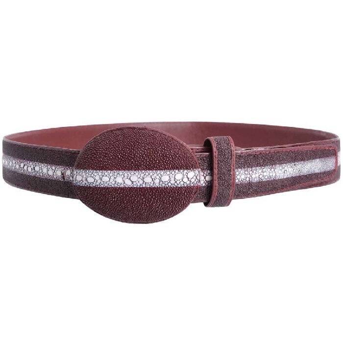 Burgundy Stingray Belt Full Rowstone With Leather Lining Handmade Genuine 1 1/2"