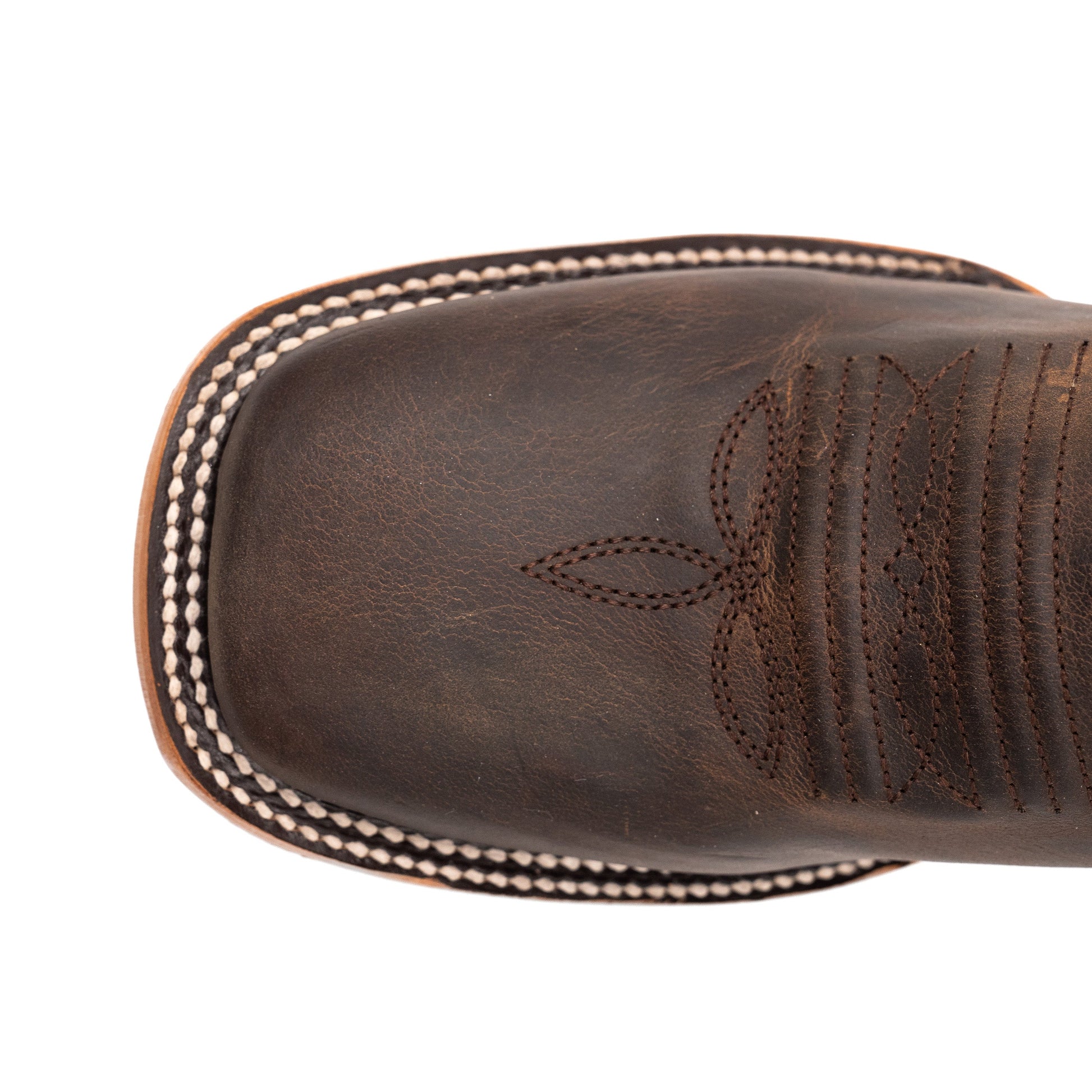 Men's Ferrini Patriot Leather Boots Handcrafted Square Toe Chocolate