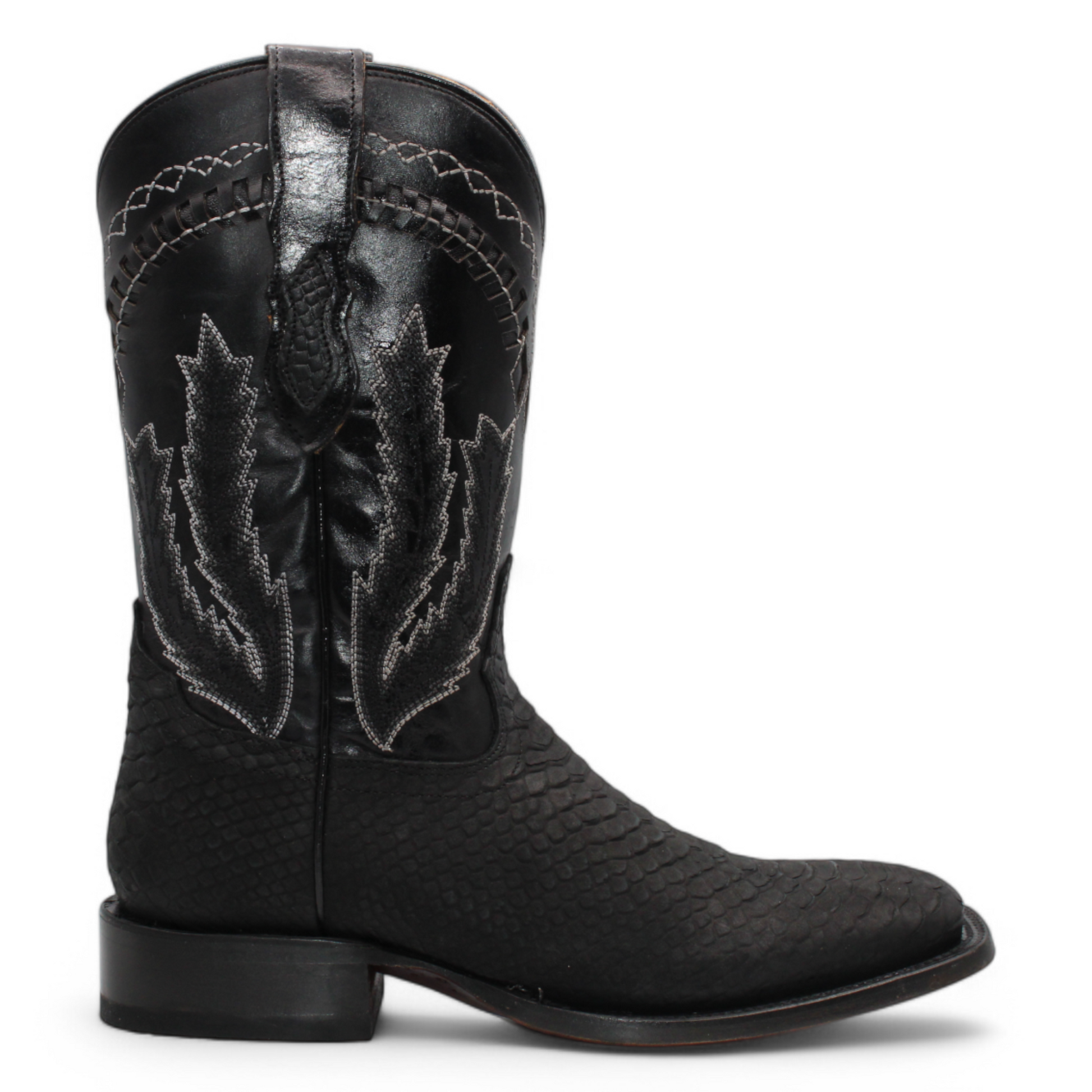 Men's Hooch Python PRINT Cowboy Boots Black Handmade