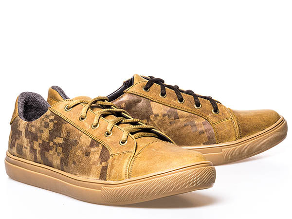Round Toe Burnish Tan w/ Printed Camo Side Panels * Handcrafted Shoe * Cemented & Lock Stitched * Removable Insole * All Leather Lining * Rubber Sole*