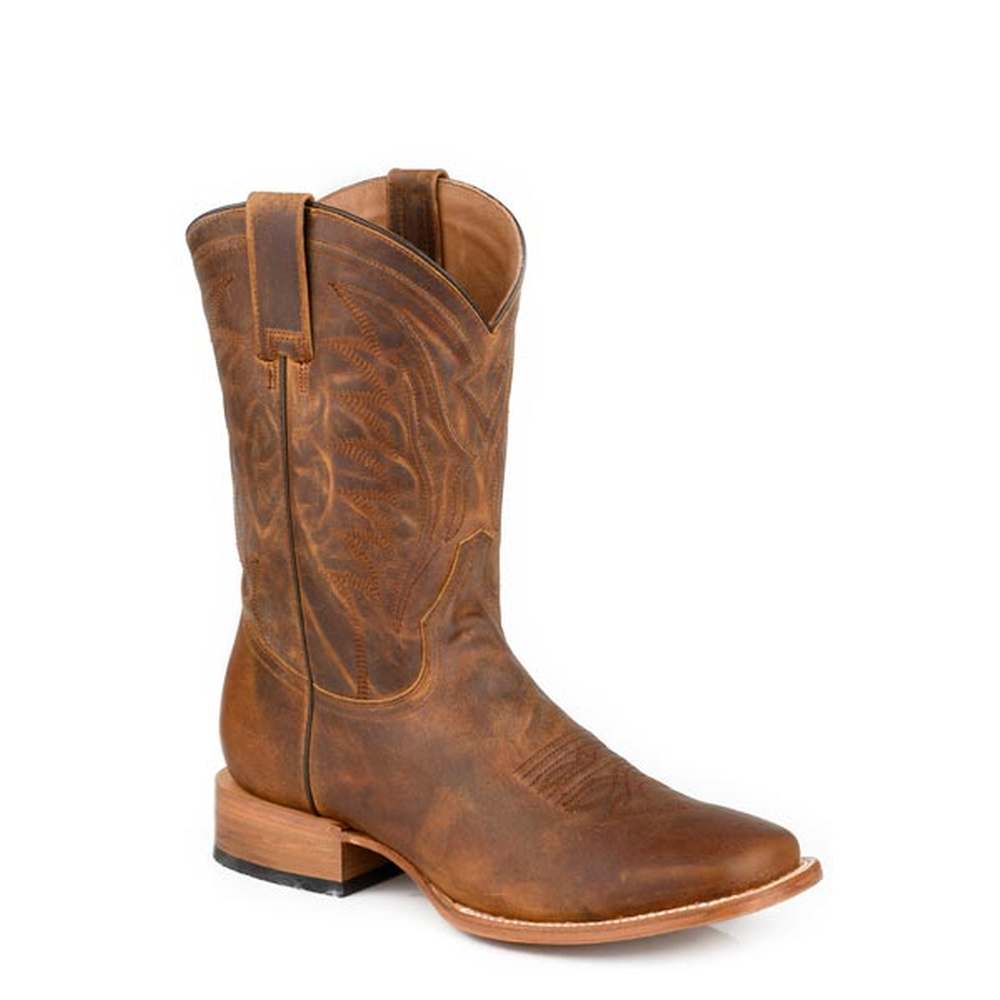 Men's Stetson Wells Leather Boots Handcrafted Square Toe Tan