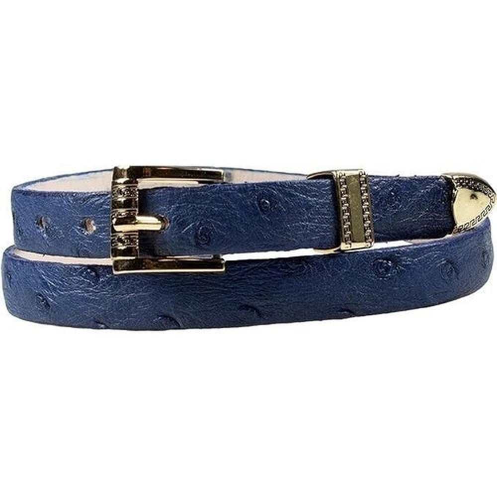 Ostrich Cowboy Hat Band Blue Gold Plated 3 Piece Buckle Set Handmade 26”