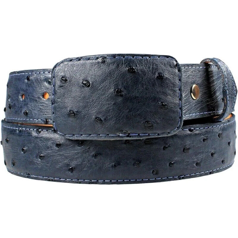 White Diamond Ostrich Belt Blue Jean Leather Lining Genuine Handmade 1 1/2" Wide Removable Buckle