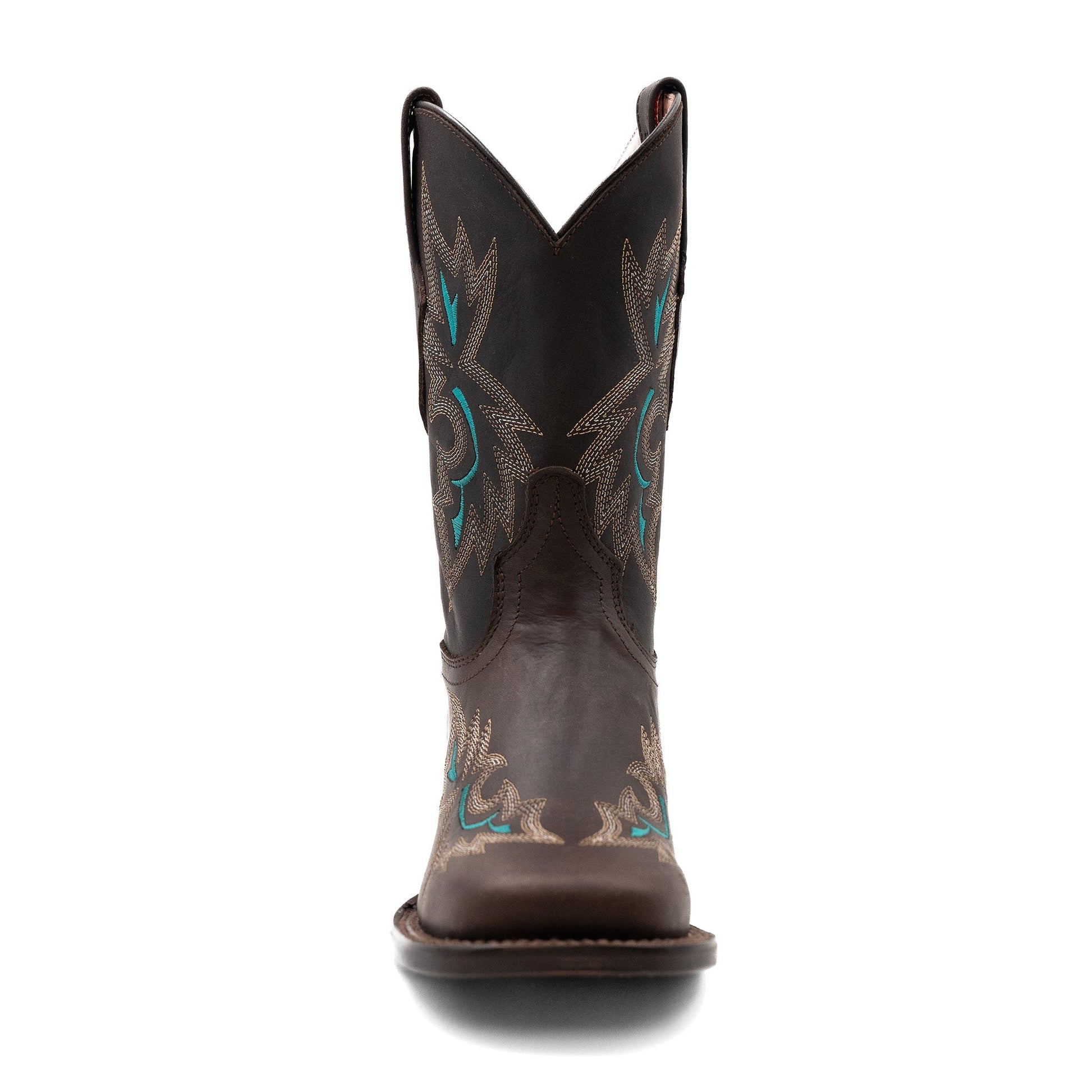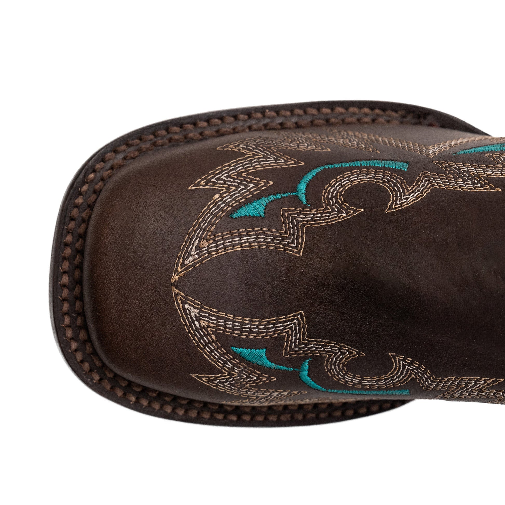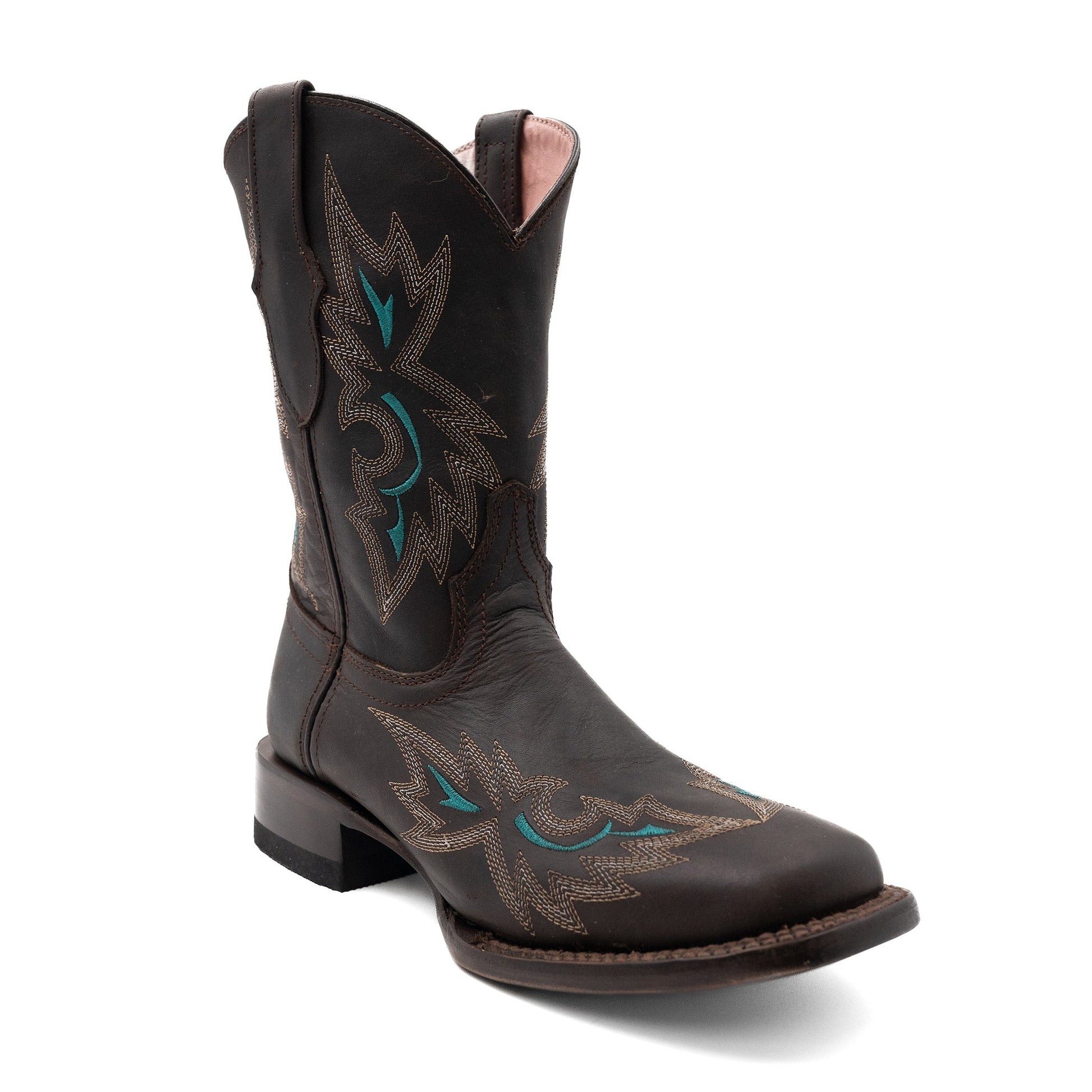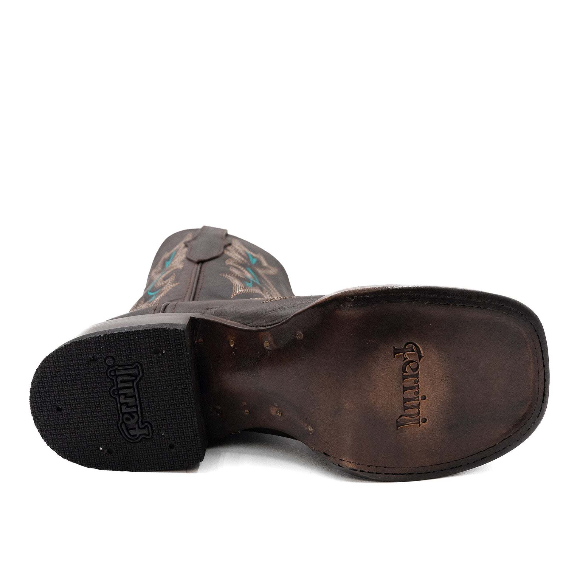 Women's Ferrini Betsy Leather Boots Handcrafted Square Toe Nicotine