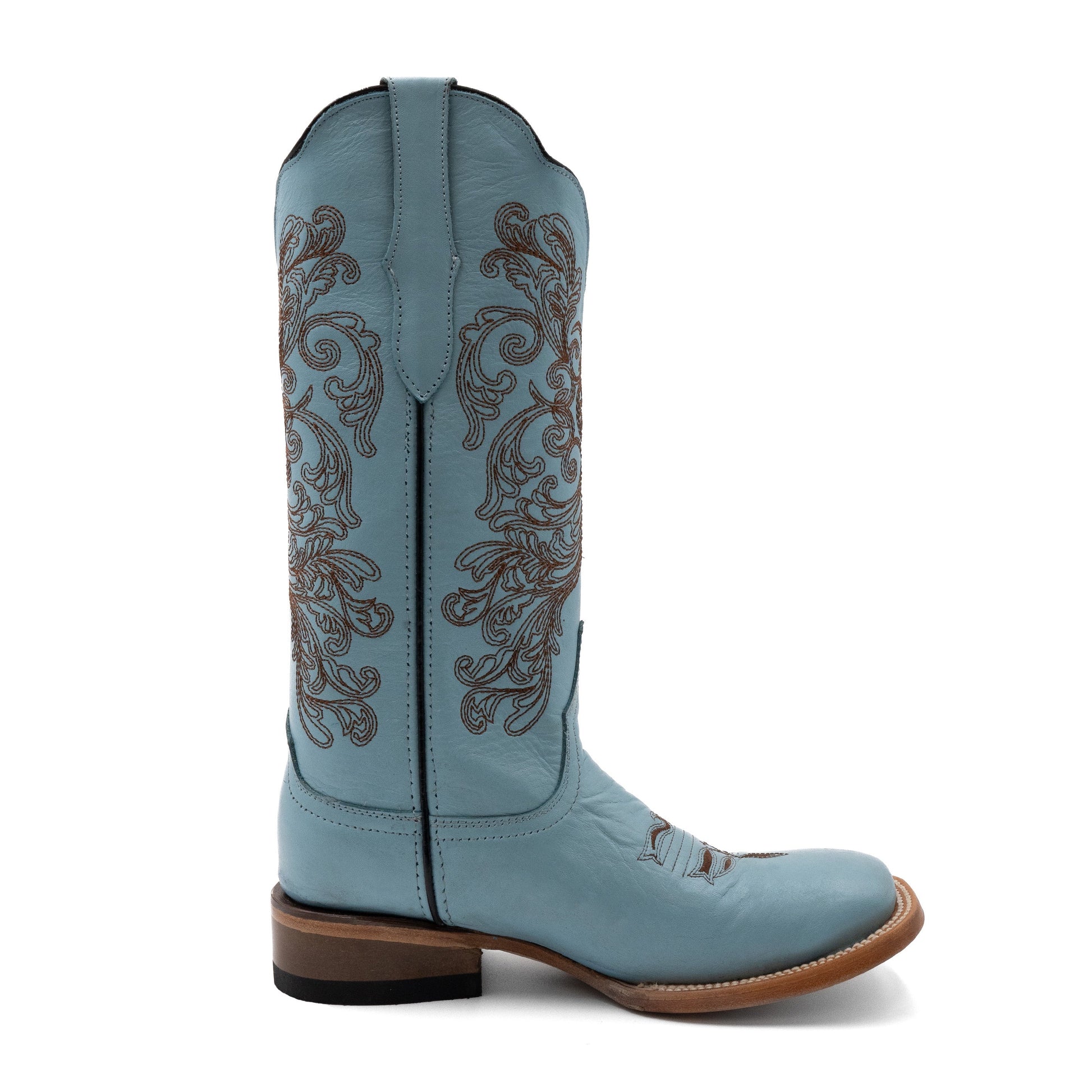 Women's Ferrini Ella Leather Boots Handcrafted Square Toe Aqua