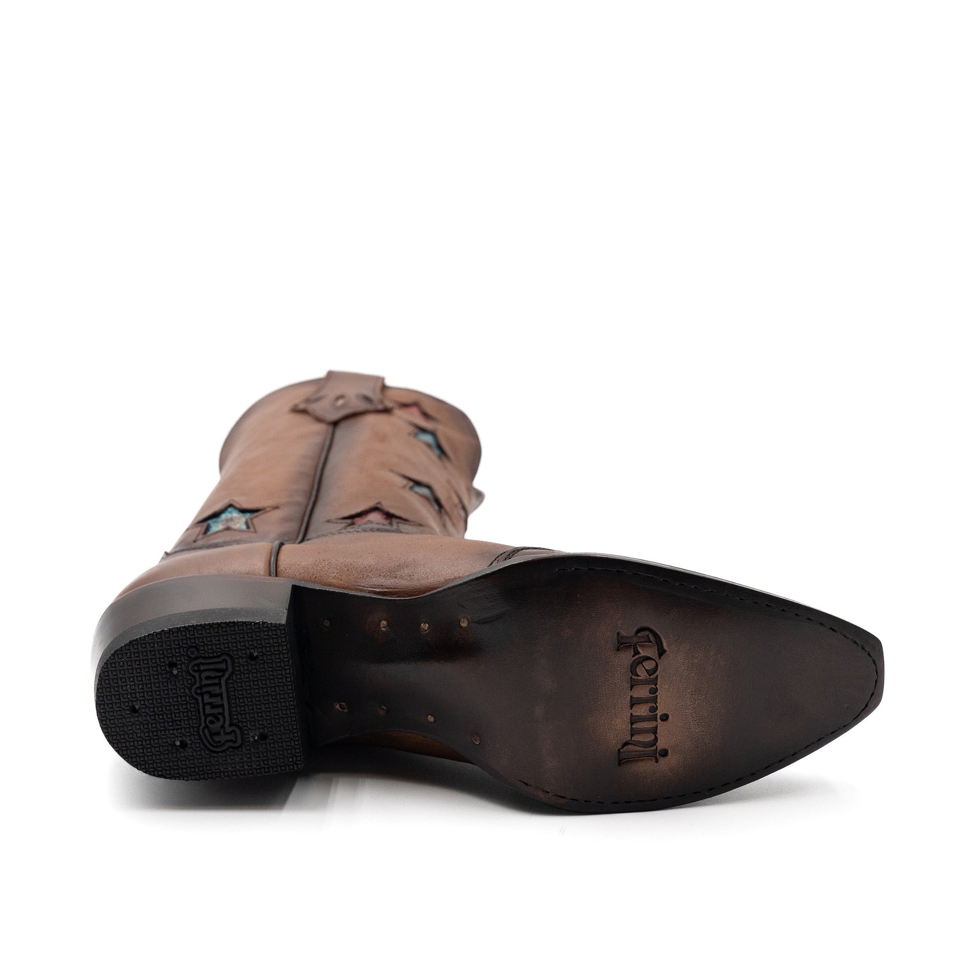 Women's Ferrini Estrella Leather Boots Handcrafted Snip Toe Brandy