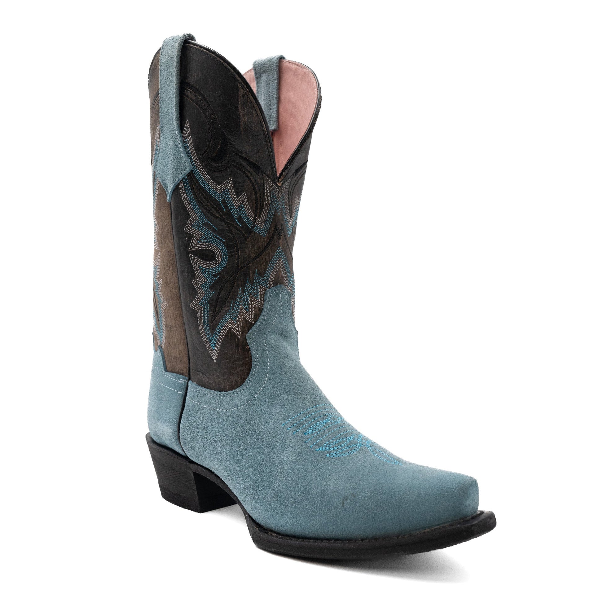 Women's Ferrini Holly Leather Boots Handcrafted Snip Toe Dusty Blue