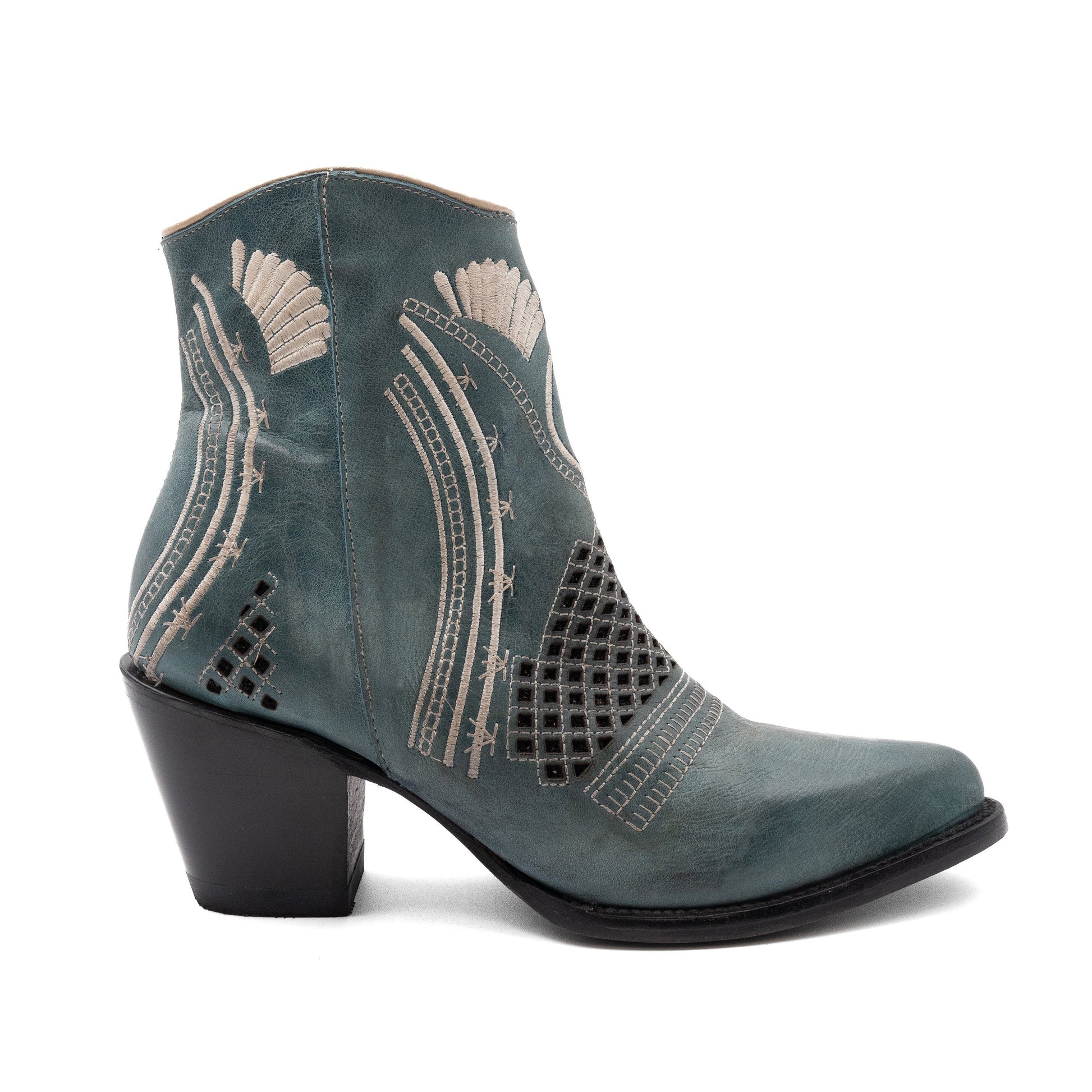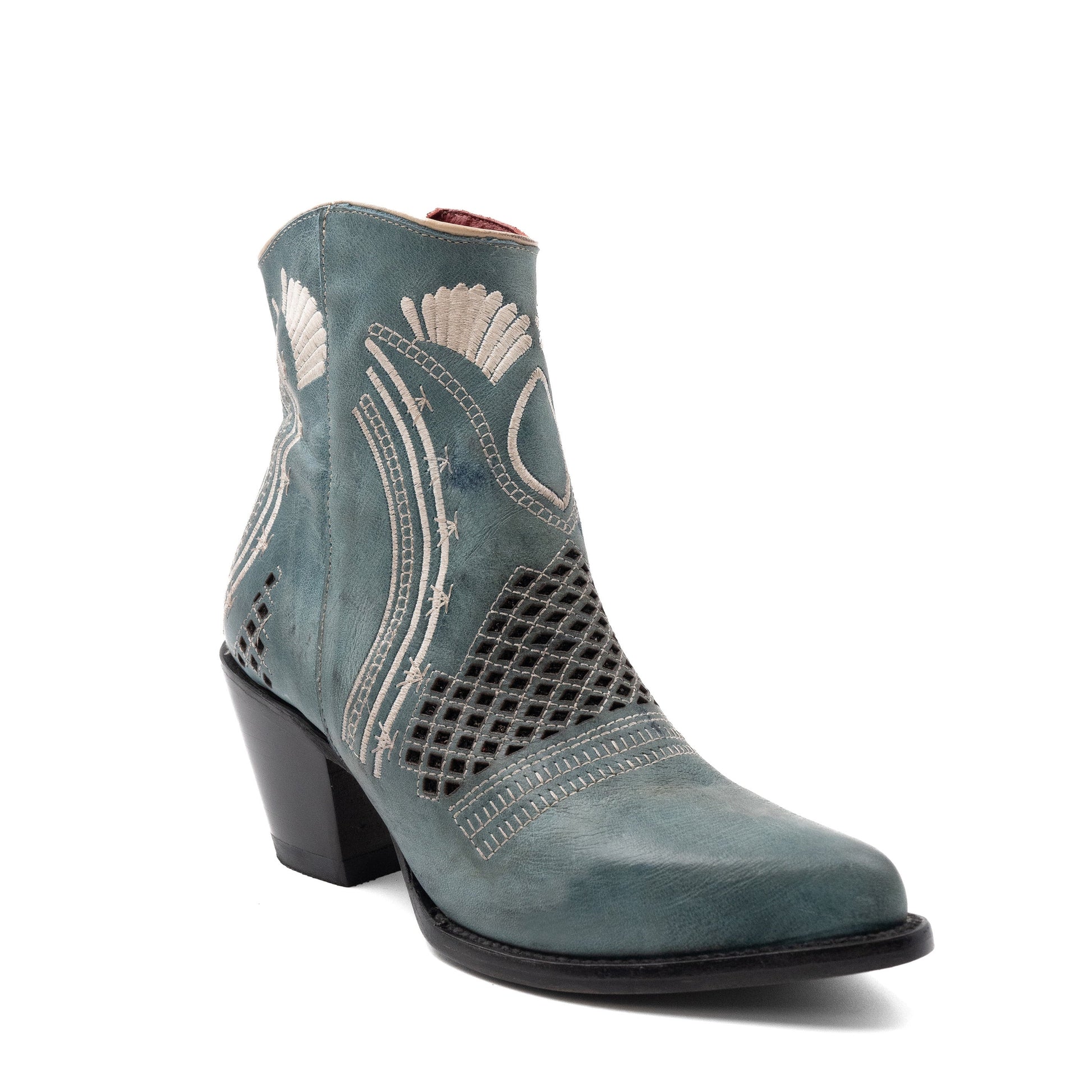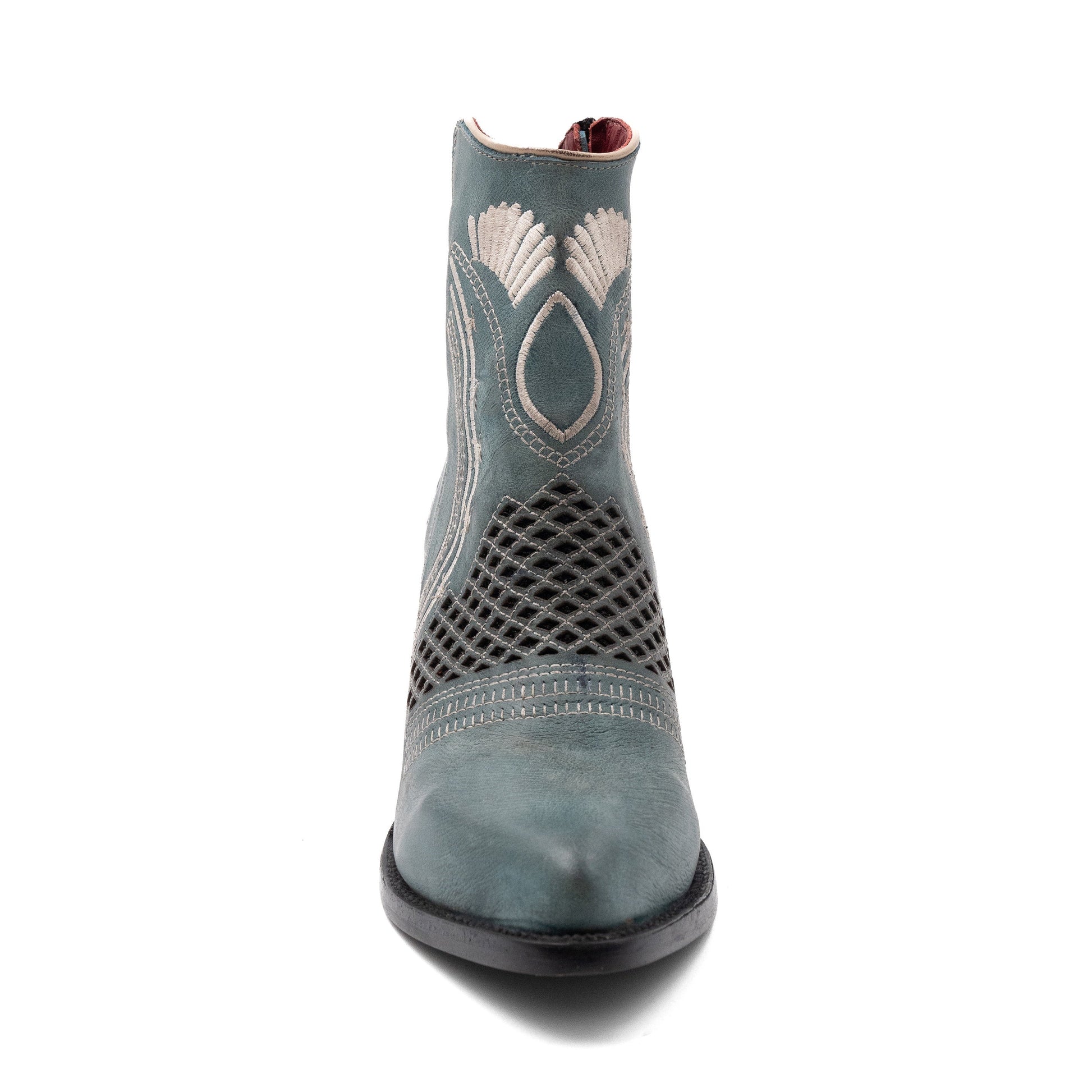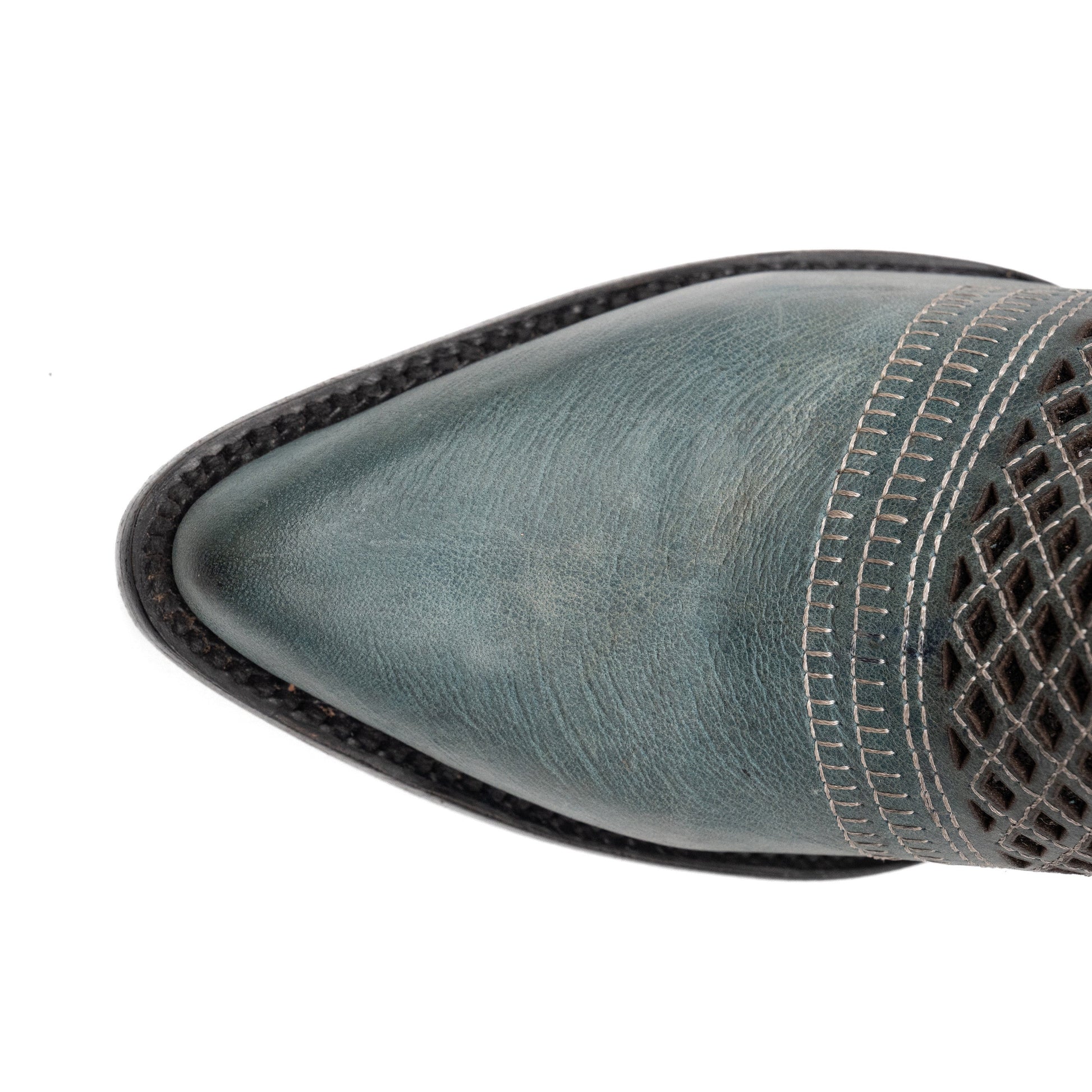 Women's Ferrini Savannah Leather Boots Handcrafted Round Toe Dusty Blue