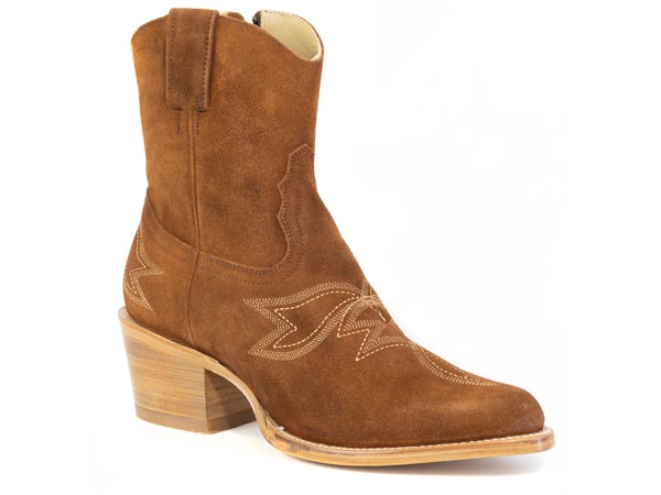 Ginger Suede Vamp And 7" Shaft * Tonal Flame Embroidery * YKK Inside Zipper * Single Welt * Stacked Heel * All Leather Sole * Lemonwood Pegs * Brass Nail Construction * All Leather Lining * Cushioned Insole * Snip Toe *